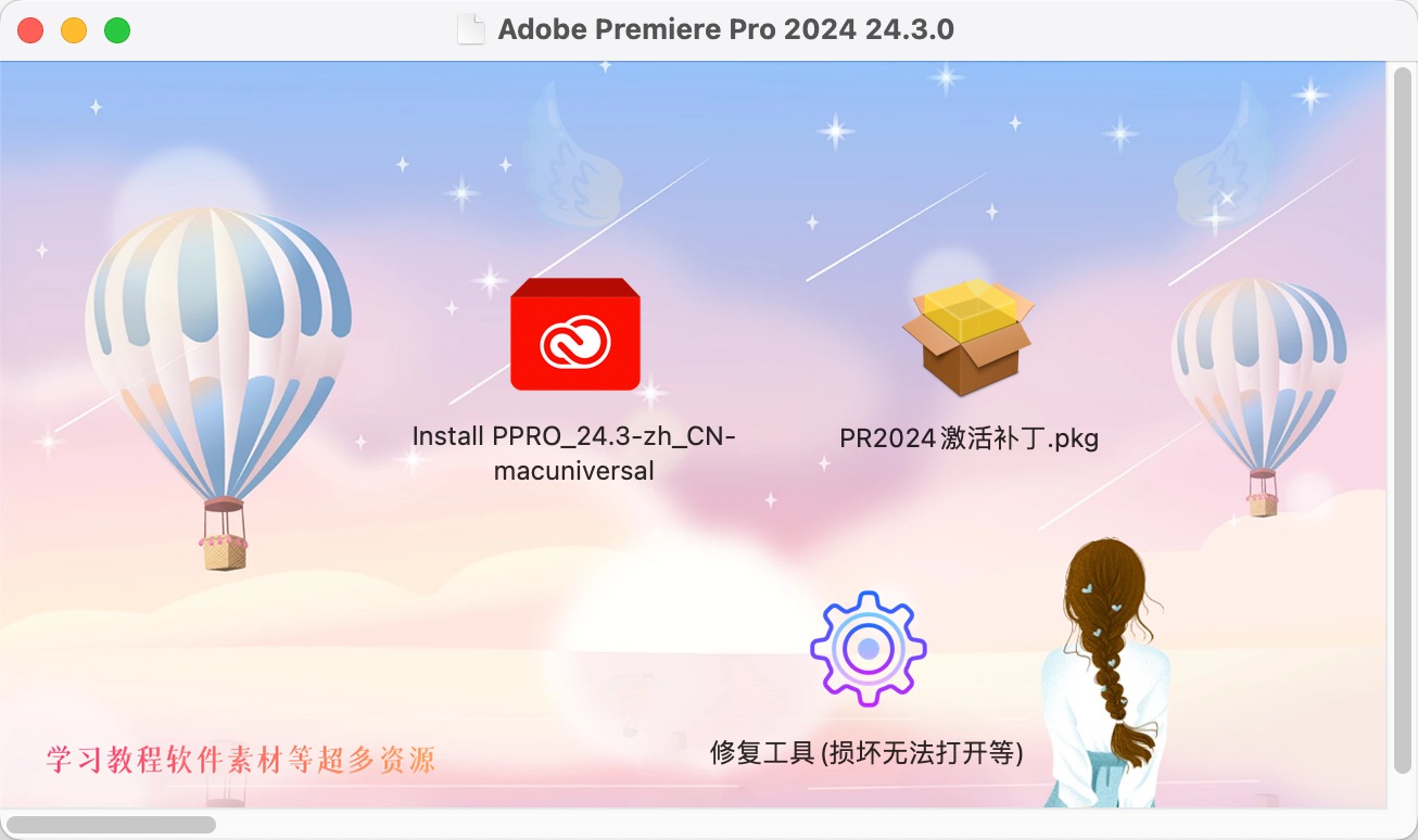 2、打开本站下载的Premiere Pro 2024,双击install安装软件。