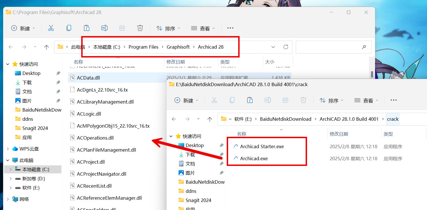 将破解补丁复制到软件安装目录,默认目录为C:\Program Files\Graphisoft\Archicad 28