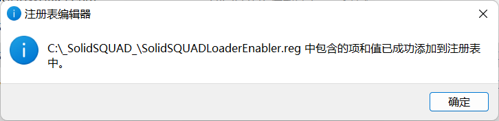 17、再次去到C盘_SolidSQUAD_文件夹里面,找到SolidSQUADLoaderEnabler.reg双击运行,点击是。