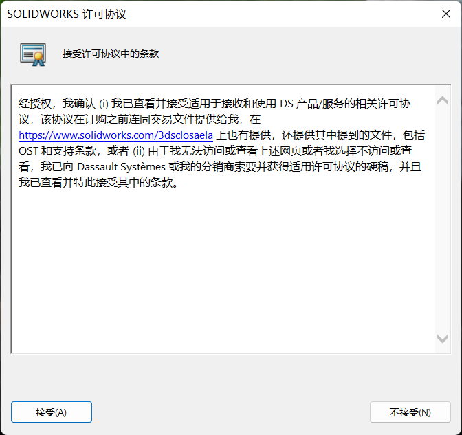 20、在桌面上找到软件图标打开运行SolidWorks2023,软件许可协议接受,激活完成。