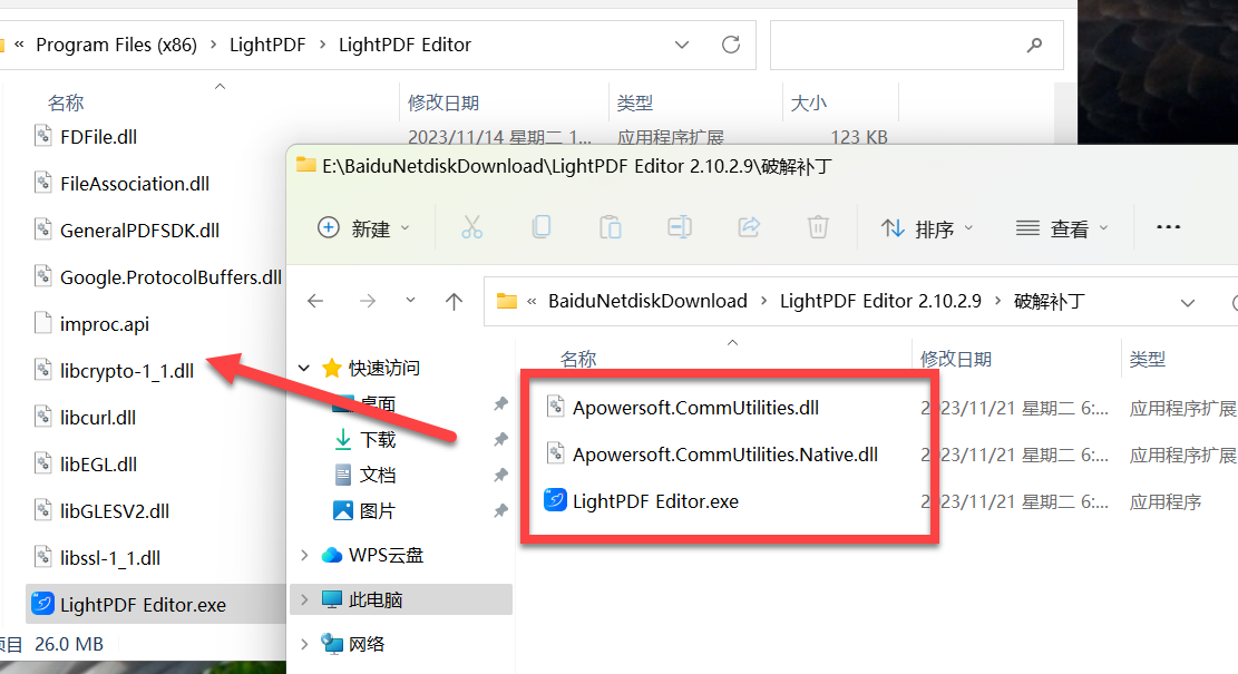 2、将破解补丁复制到安装目录下C:\Program Files (x86)\LightPDF\LightPDF Editor中。