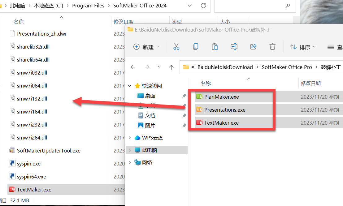 2、将破解补丁复制到安装目录下C:\Program Files\SoftMaker Office 2024