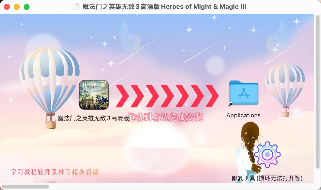 英雄无敌3安装包下载完成后,拖动左侧的应用到右侧即可。