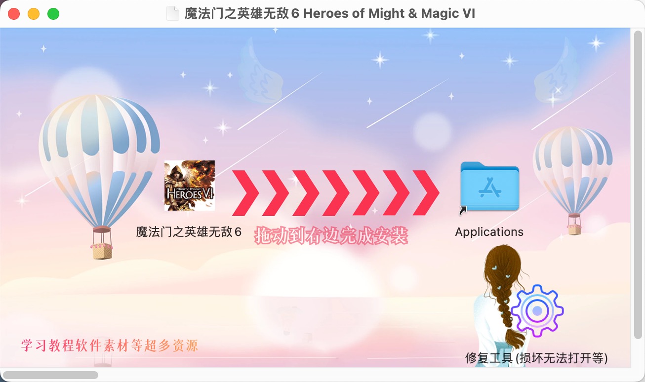 魔法门之英雄无敌6安装包下载完成后,拖动左侧的英雄无敌6到右侧即可(需要断开网络运行游戏)。