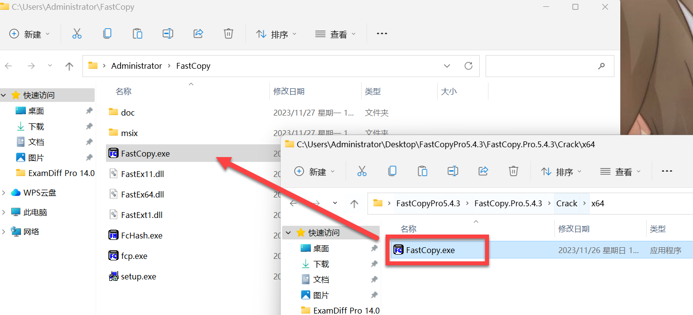 2、将Crack文件夹里的FastCopy.exe复制到安装目录替换(在桌面找到安装好的程序,鼠标指向并右击,选择打开文件所在位置)。