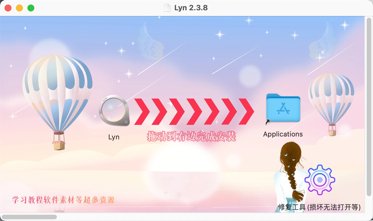Lyn安装包下载完成后,拖动左侧的Lyn到右侧即可。