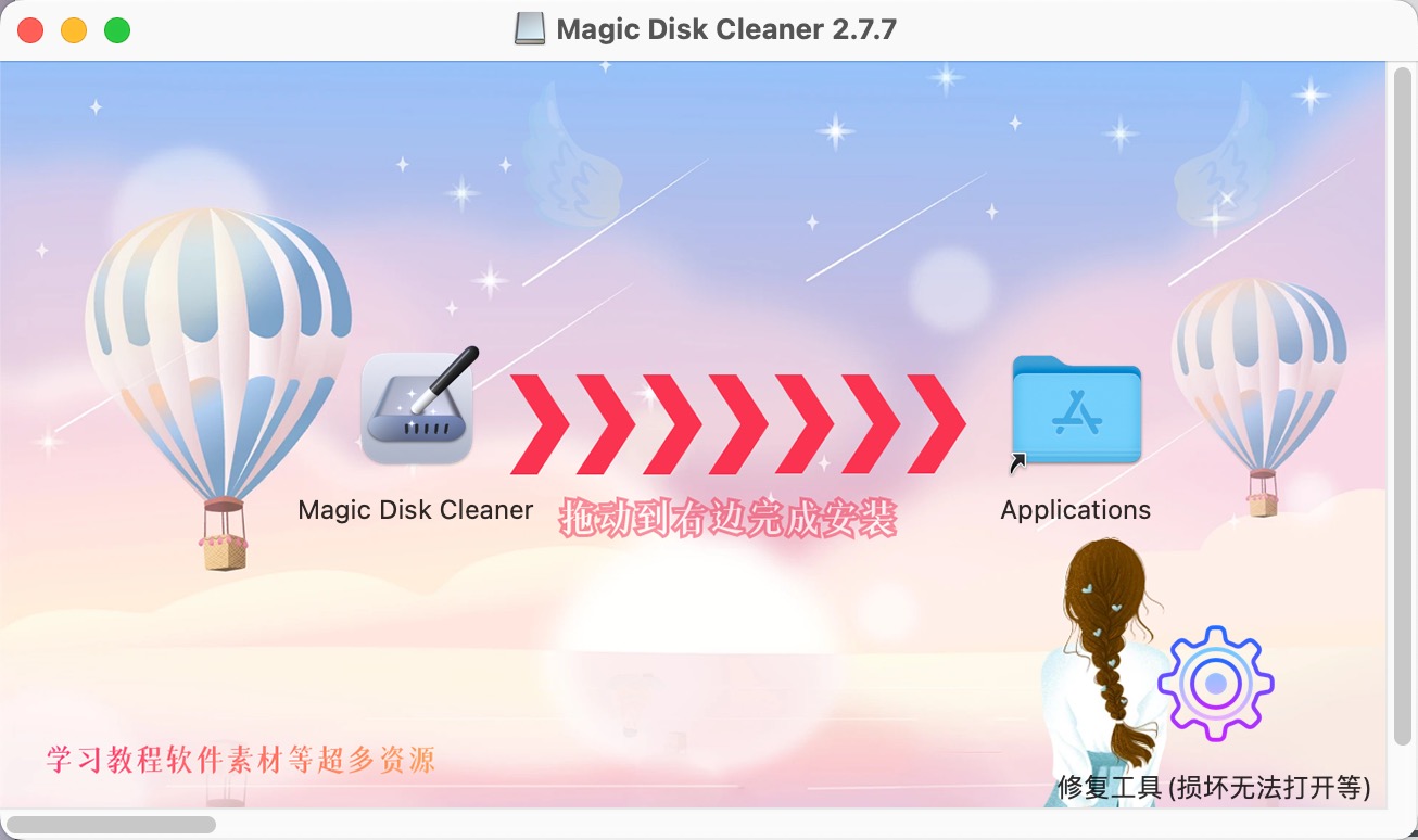 Magic Disk Cleaner安装包下载完成打开,拖动安装