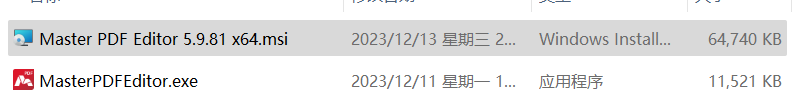 1、打开在本站下载的Master PDF Editor安装包,双击Master PDF Editor 5.9.81 x64.msi安装。