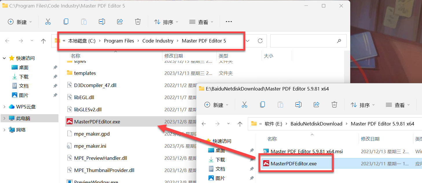 2、将MasterPDFEditor.exe复制到安装目录下(C:\Program Files\Code Industry\Master PDF Editor 5)