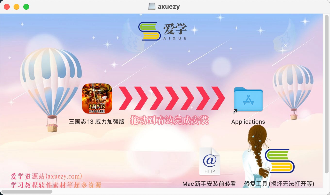 三国志13安装包下载完成打开,拖动安装.