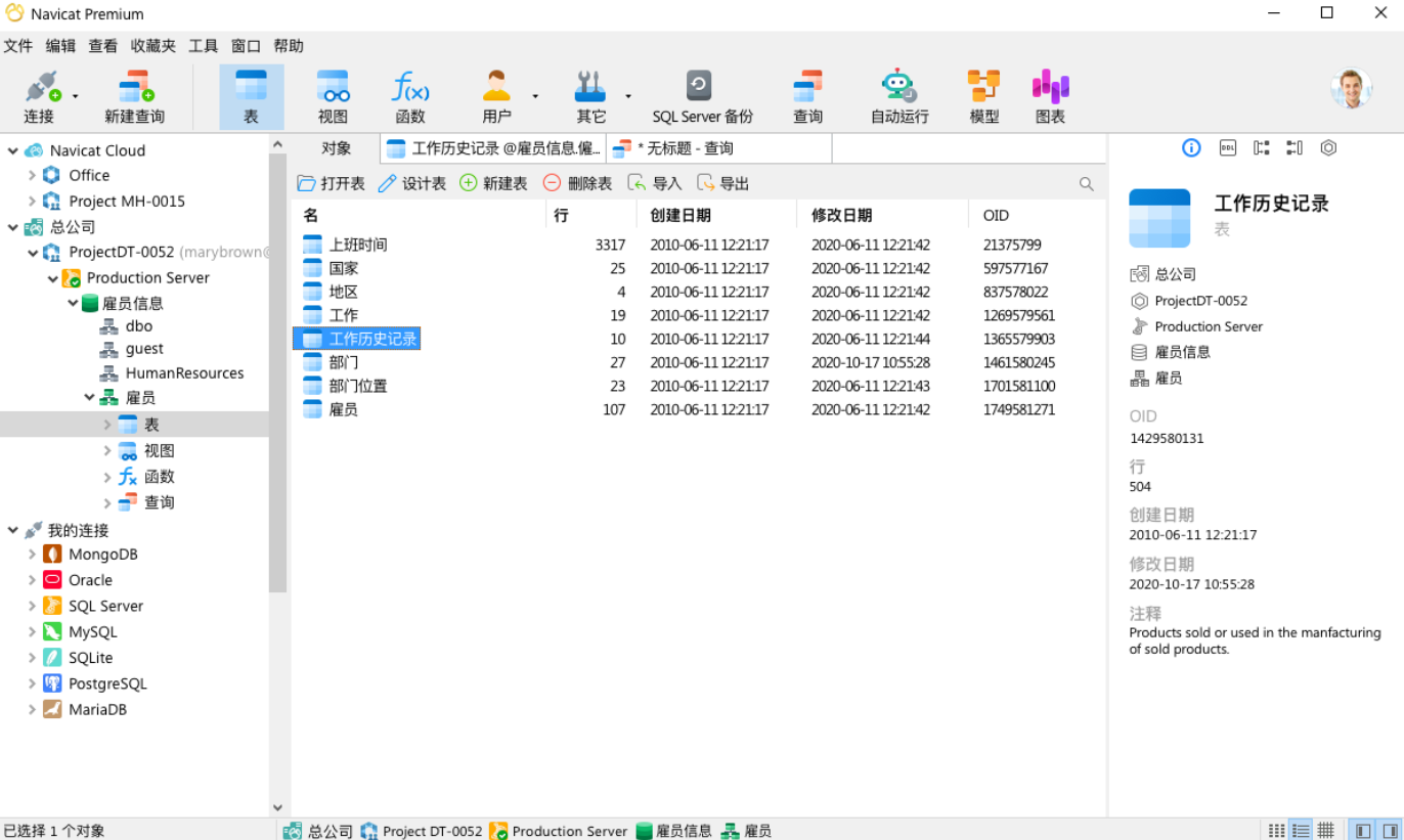 我们的对象设计器让你方便快捷地管理数据库对象。Navicat 更配备了一个方便的用户界面,将查询编写分为几个选项卡。让你在编写复杂 SQL 的每一步都能更有信心和更准确。