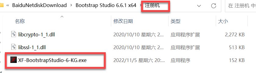 2、双击运行注册机文件夹里面的XF-BootstrapStudio-6-KG。