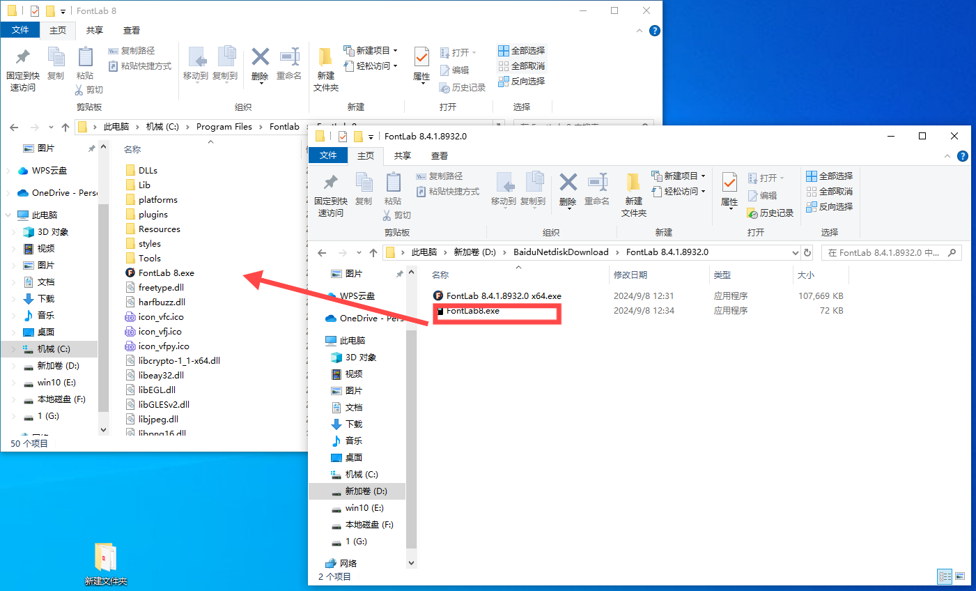 2、将破解补丁FontLab 8.exe复制到安装目录C:\Program Files\Fontlab\FontLab 8中。